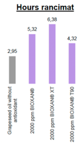 Rancimat analiza el perfil lipídico de cada aceite, proporcionando información clave para seleccionar el antioxidante más eficaz para la estabilización, como se muestra en estos estudios. Btsa evaluó la estabilidad oxidativa del aceite de semilla de uva (perfil insaturado) y del aceite de macadamia (perfil no insaturado) mediante el test Rancimat. Sin antioxidantes, el aceite de semilla de uva se mantuvo estable durante 2,95 horas, mientras que el aceite de macadamia duró 4,42 horas. La adición de Bioxan® mejoró significativamente la estabilidad, alcanzando 6,38 horas con 2000 ppm de Bioxan® XT en el aceite de semilla de uva y unas impresionantes 14,45 horas con 2000 ppm de Bioxan T90 en el aceite de macadamia.
