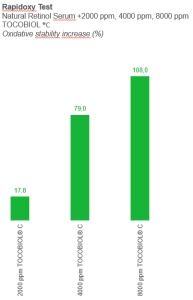 El departamento de I+D de Btsa ha llevado a cabo dos ensayos para determinar la actividad antioxidante de BIOXAN® a diferentes concentraciones (2000, 4000 y 8000 ppm) en la estabilización de un suero facial con Vitamina C y un suero facial a base de Retinol. Para ello se ha empleado el método RapidOxy, que, como se ilustra en el vídeo informativo, acelera el proceso de oxidación aumentando la temperatura y la presión del oxígeno en contacto con la muestra en una cámara sellada.
