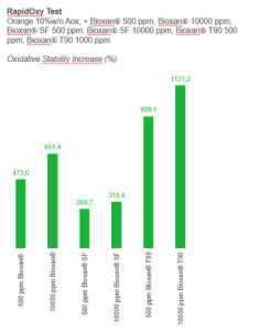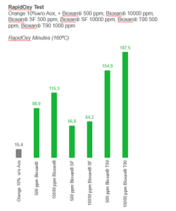To confirm the antioxidant effectiveness of Bioxan®, BTSA conducted thorough testing using the RapidOxy method, a state-of-the-art tool for accelerated oxidation. RapidOxy simulates long-term oxidation processes by exposing samples to pure oxygen under controlled conditions, such as elevated temperature and pressure. This method allows for quick evaluation of an antioxidant’s performance, providing precise, reproducible results that help manufacturers understand the efficacy of preservation strategies. Click here to learn more about the RapidOxy method.