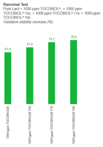 During the test, various Tocobiol® concentrations were added to pork lard samples and induction times, the point at which significant oxidation occurs, were measured.