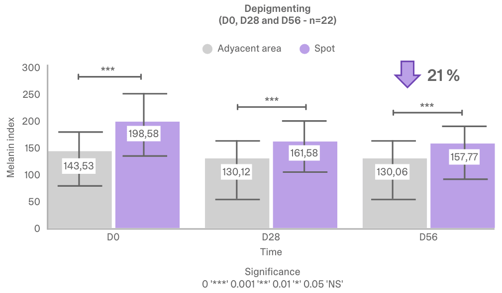 Conclusion: Significant and selective reduction of hyperpigmentation after 56 days.