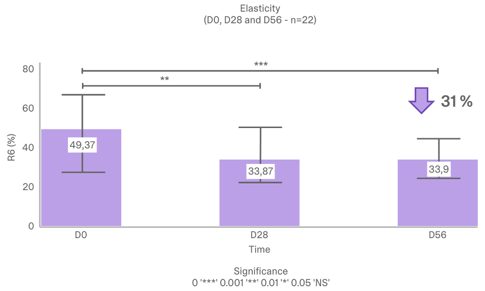 Conclusion: Strong improvement in skin elasticity and biomechanical resilience.