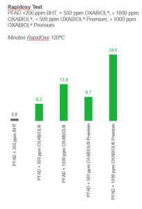 BTSA ha condotto studi con RapidOxy per testare le prestazioni della sua gamma di antiossidanti naturali Oxabiol® nella stabilizzazione del PFAD, una base comune per i saponi di calcio. I risultati hanno dimostrato miglioramenti significativi nella stabilità ossidativa rispetto ai PFAD non trattati e ai campioni trattati con antiossidanti sintetici come il BHT.