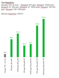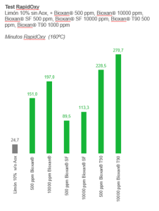 Para confirmar la eficacia antioxidante de Bioxan®, BTSA realizó pruebas exhaustivas con el método RapidOxy, una herramienta de última generación para la oxidación acelerada. RapidOxy simula procesos de oxidación a largo plazo mediante la exposición de muestras a oxígeno puro en condiciones controladas, como temperatura y presión elevadas. Este método permite evaluar rápidamente el rendimiento de un antioxidante, proporcionando resultados precisos y reproducibles que ayudan a los fabricantes a comprender la eficacia de las estrategias de conservación. Haga clic aquí para obtener más información sobre el método RapidOxy.