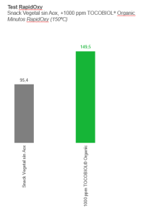 En este estudio, el BTSA evaluó la estabilidad oxidativa de un aperitivo vegetal. Los resultados fueron significativos y prometedores: Tocobiol® Organic aumentó la estabilidad oxidativa del aperitivo en un impresionante 56,80%. Esta mejora significa que el producto conservó su sabor, textura y valor nutritivo durante más tiempo, garantizando una experiencia superior al consumidor y reduciendo al mismo tiempo el deterioro de los alimentos. Para los fabricantes, estas ventajas se traducen en menos residuos de producto, mayor competitividad y compromisos de sostenibilidad más sólidos.